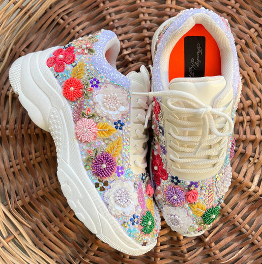 Custom Floral Bridal Sneakers - Hand-Embellished with Purple Beadwork