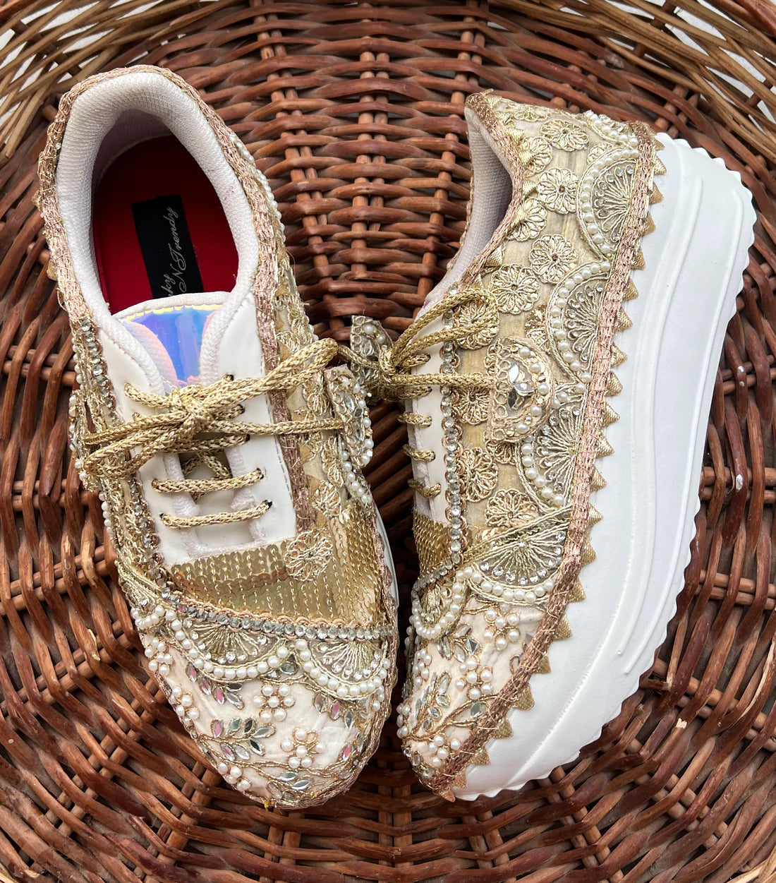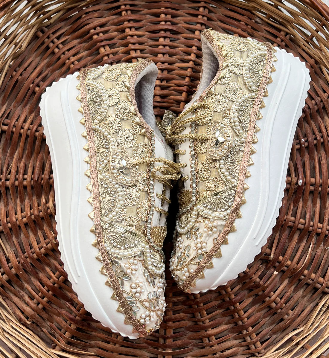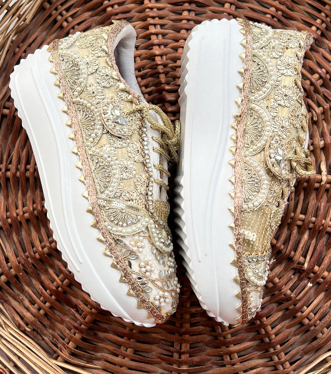 Luxe Gold Hand-Embellished Bridal Sneakers