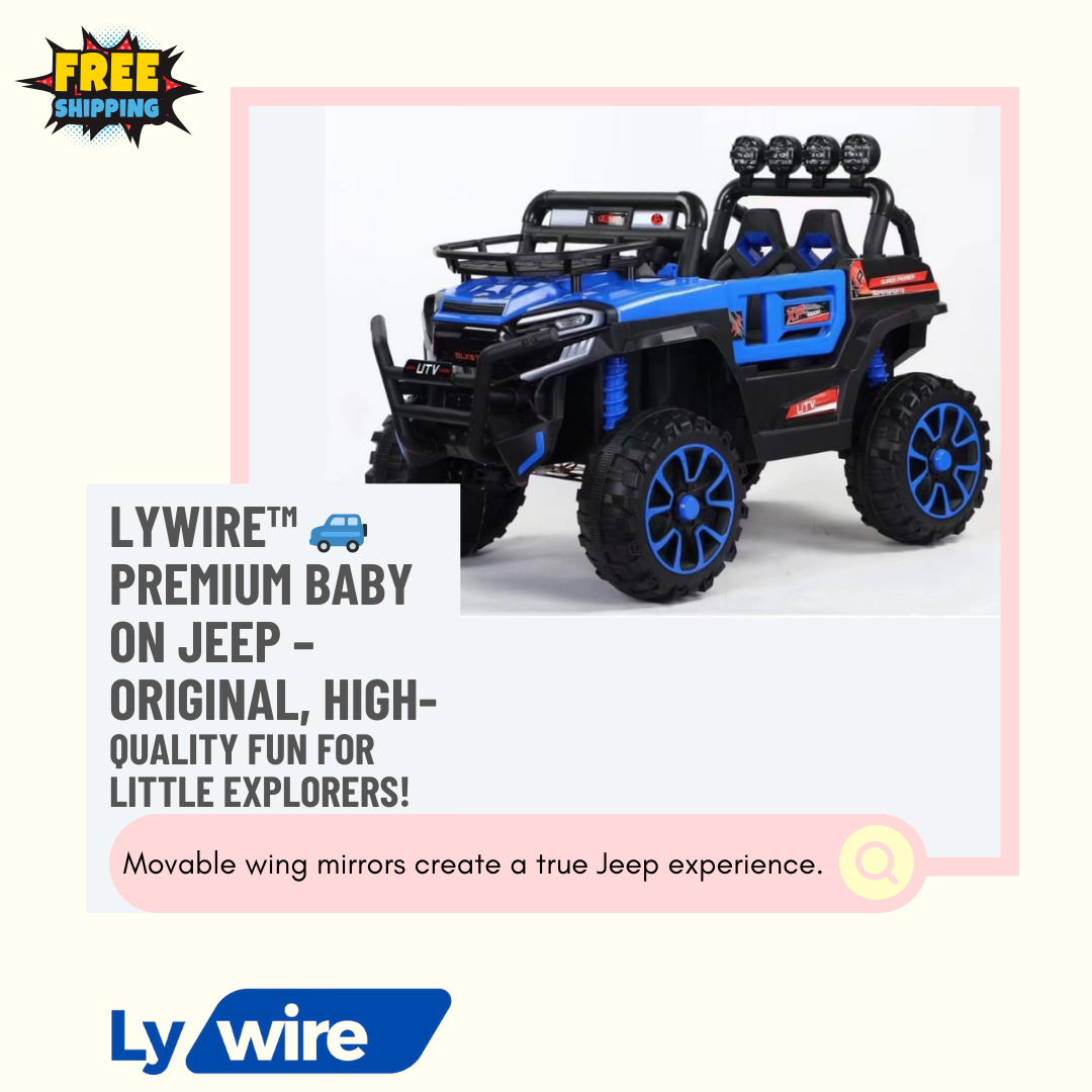Give your child the adventure of a lifetime with the Lywire™ Premium Baby Ride-On Jeep! 🚗💨 Designed for endless fun and safety, this ride-on vehicle features a realistic design, complete with working lights and movable mirrors for a true Jeep experience.